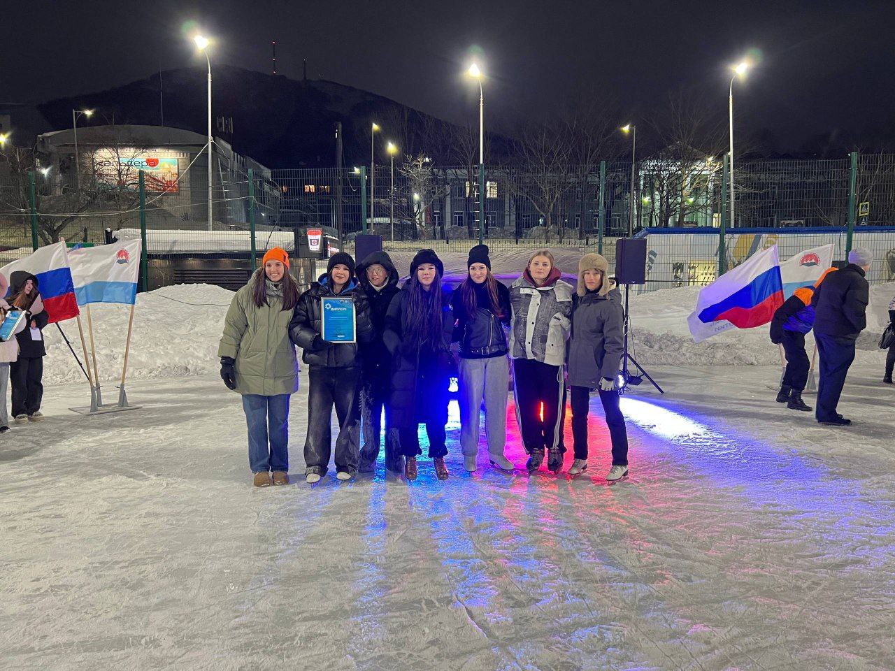 Студенты Камчатского медицинского колледжа в конце недели проявили свою активность и энтузиазм, приняв участие в фестивале "Спортивная студенческая ночь", организованный Дворцом Молодежи, который прошёл на прекрасной территории ледового катка.