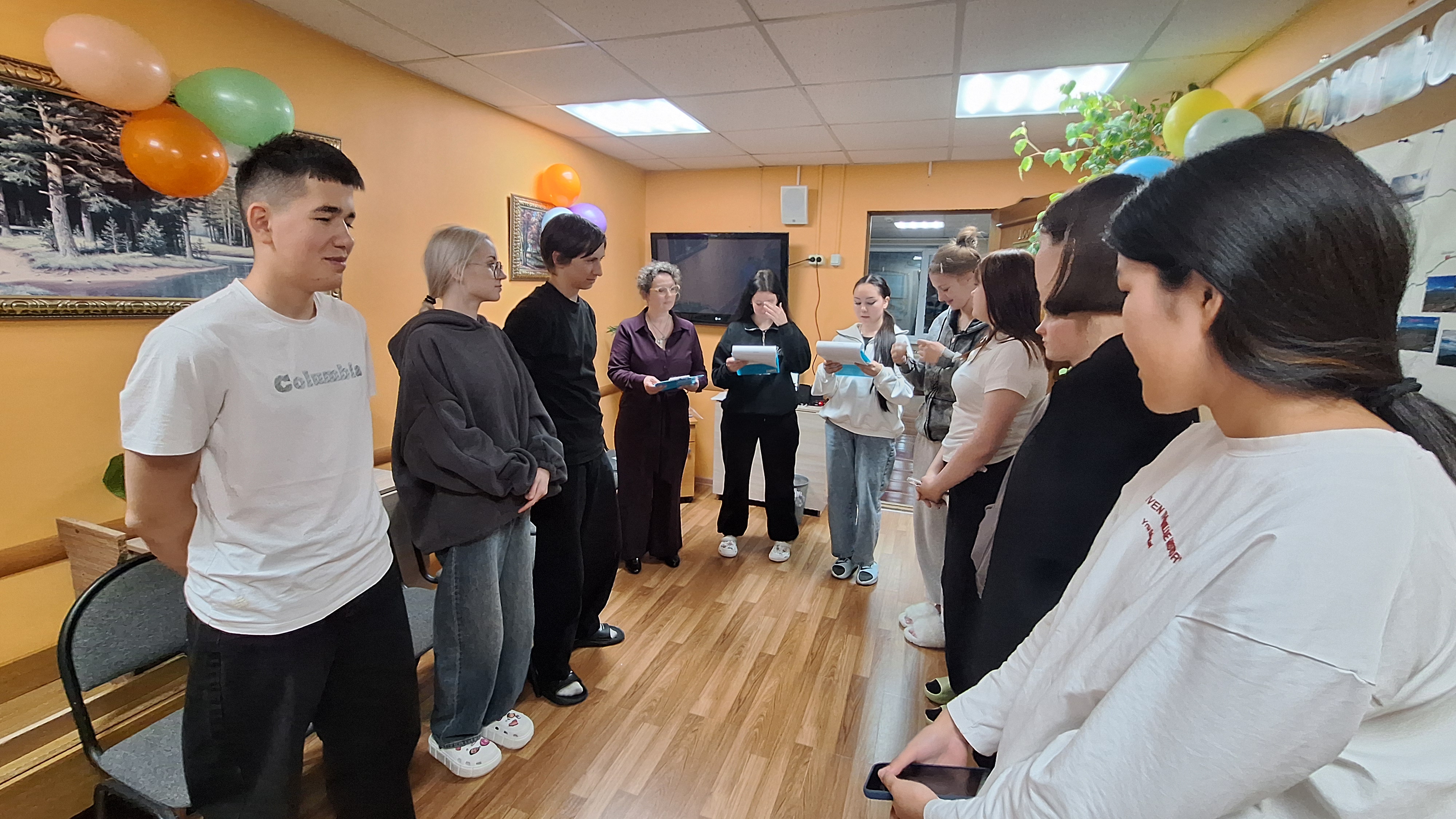 В разгар вечера конкурсы усложнились. Игра «Найди своё место» помогла студентам лучше узнать друг друга, проявив общительность и умение находить общий язык, не говоря ни слова, ладить и «договариваться».