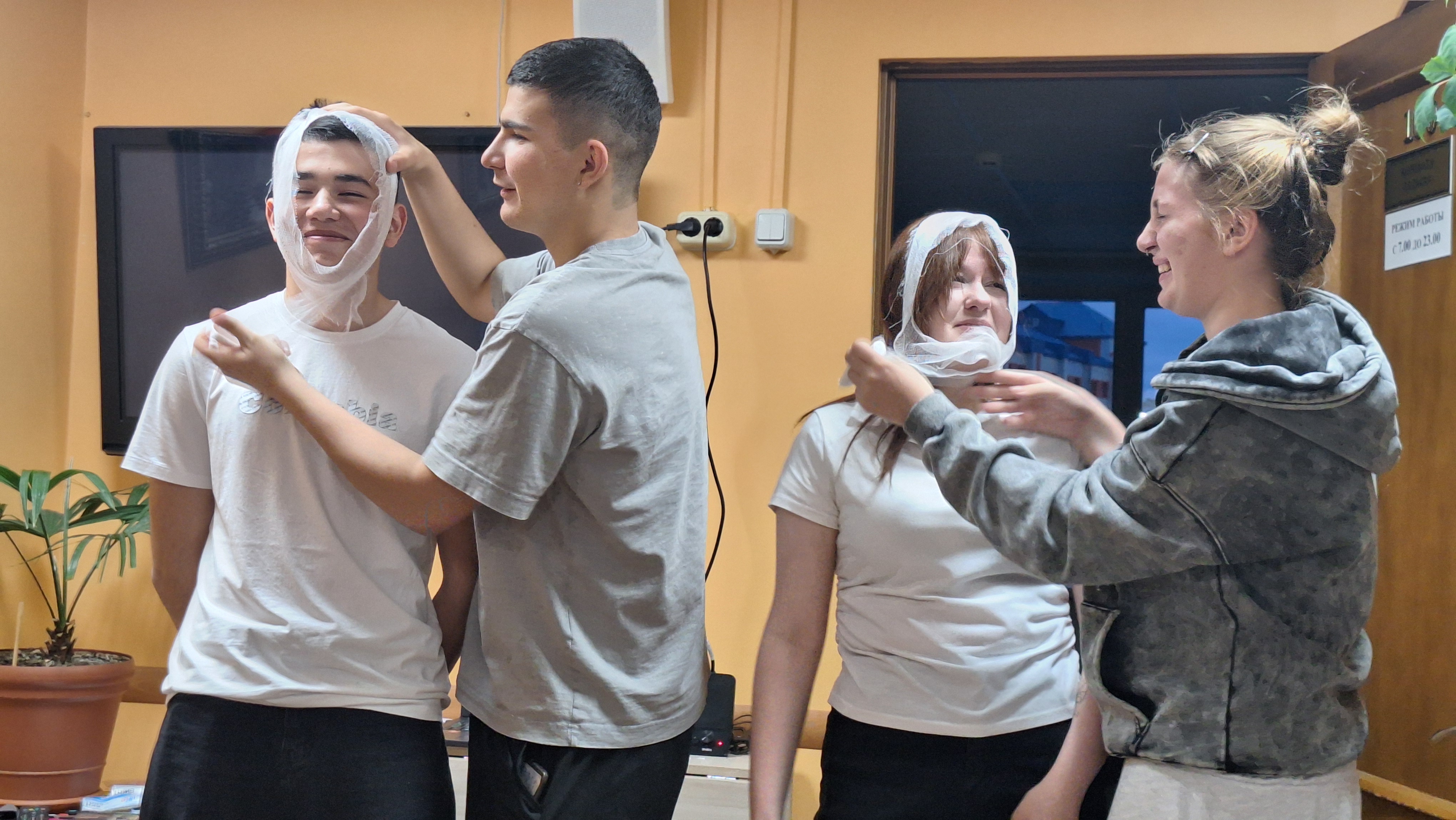 Отдельно стоит отметить веселые соревнования, проходившие под задорную музыку, такие как конкурс «Перевязочная» и «Шуточный баскетбол». Эти игры добавили динамики и задора, заставляя участников проявлять ловкость, смекалку и командный дух. Кловак Татьяна проявила прекрасные навыки и знание правильного способа перевязывания головы при травме. А в шуточном баскетболе ребята продемонстрировали свою спортивную форму и зарядились энергией.